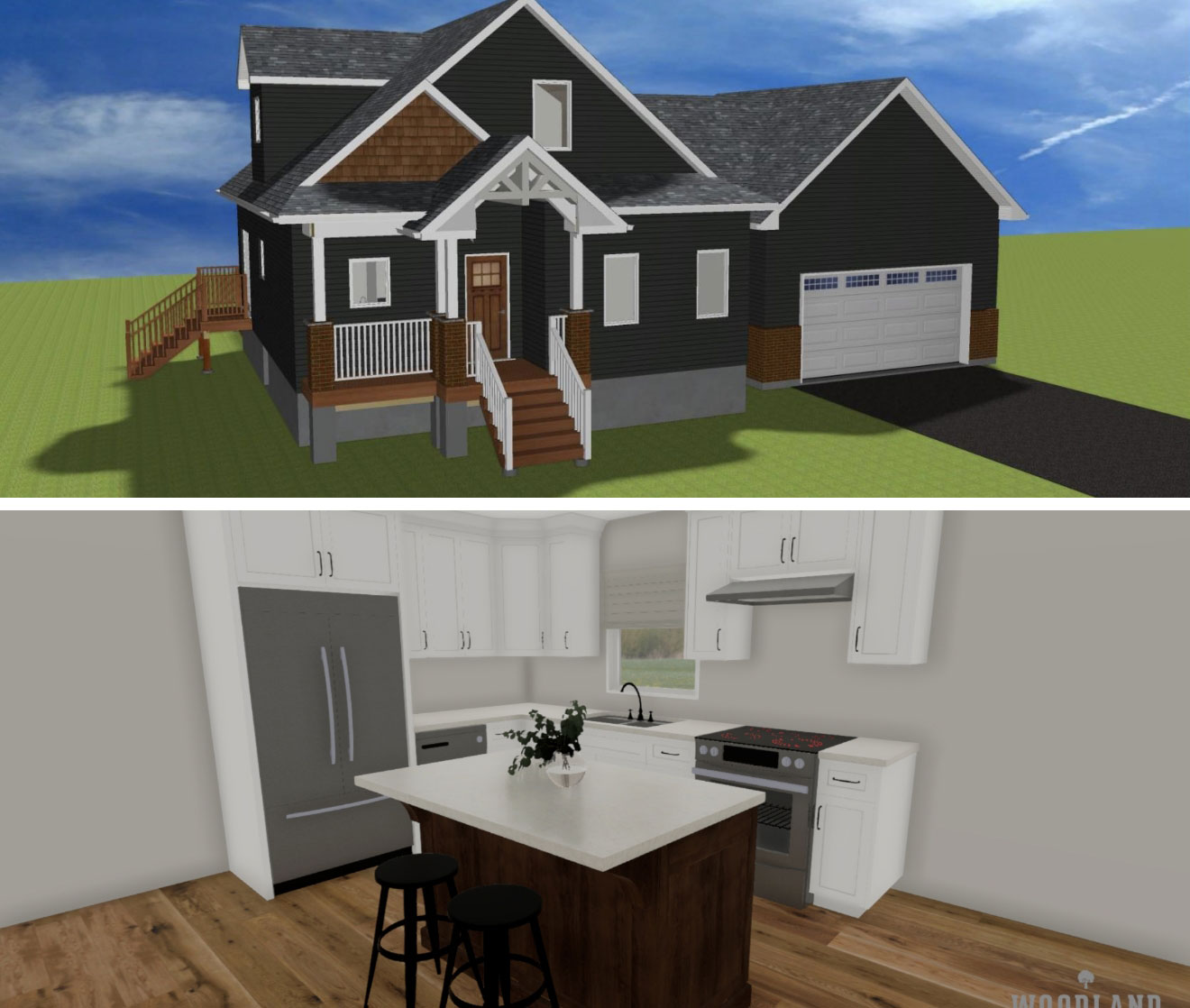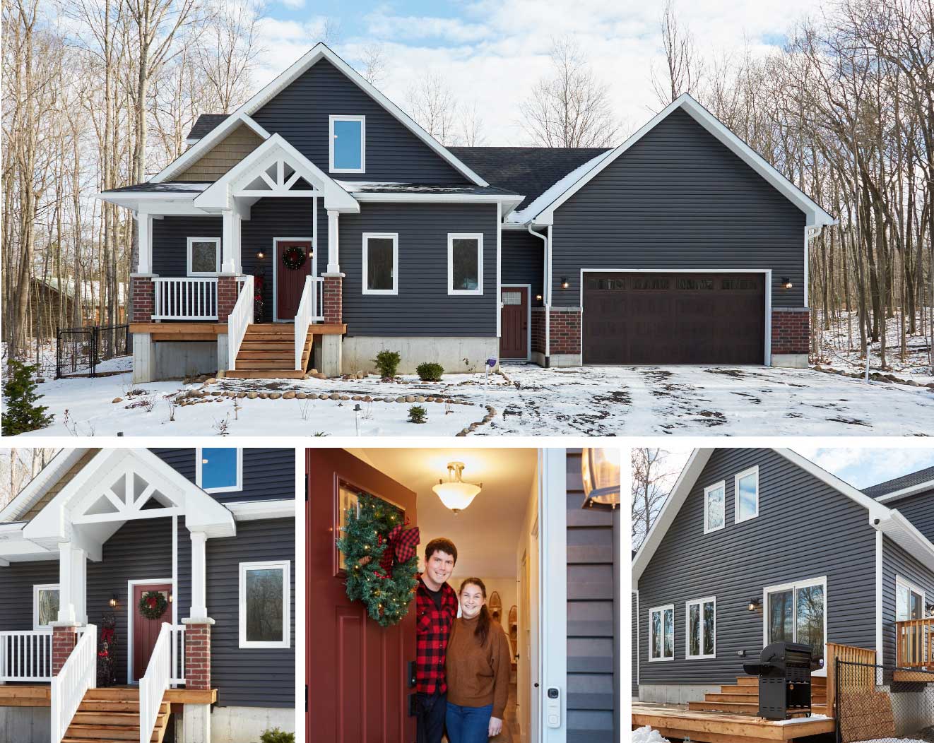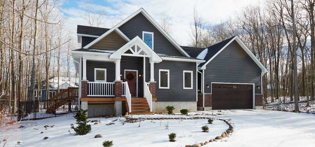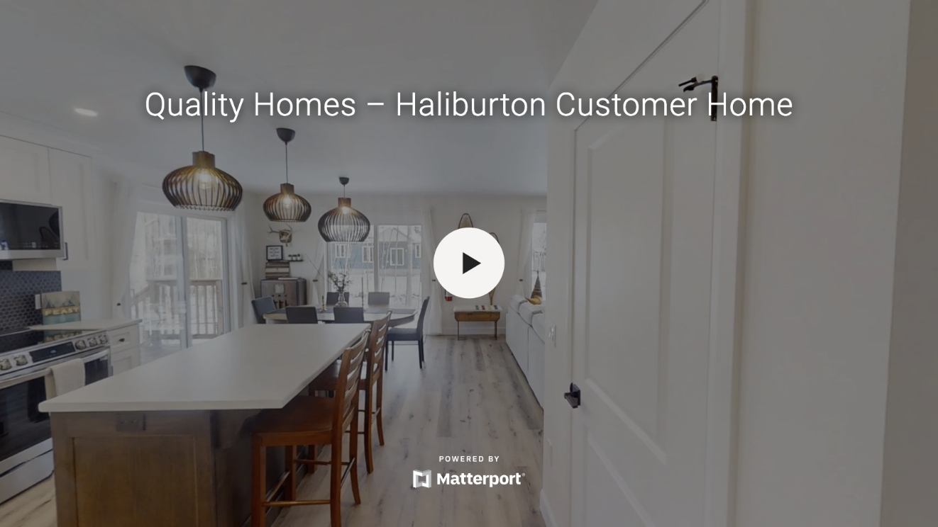 After finding the perfect lot—a beautiful tree-lined property close enough to neighbours for a sense of community, but separate enough for privacy—Robin and Nelson connected with the Quality Homes Team to find the cottage design that worked best for their needs. It was a difficult choice, torn between several designs on matters of aesthetics and functionality, but Quality Homes is an expert at custom building! The solution was simple: a custom Haliburton model with an attached garage, with a unique exterior modified to reflect the Summerside.